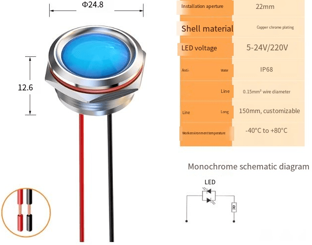 22mm wired red, green, yellow, white, blue small LED indicator lights