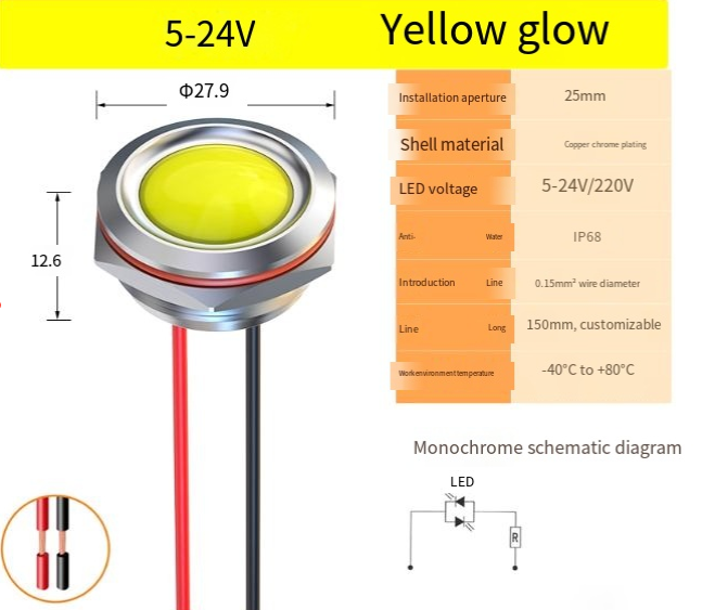 25mm wired red, green, yellow, white, blue small LED indicator lights