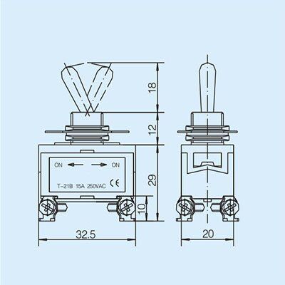 SYT-21B 15A/250VAC 25A/250VAC Bipolar single throw type Toggle switch